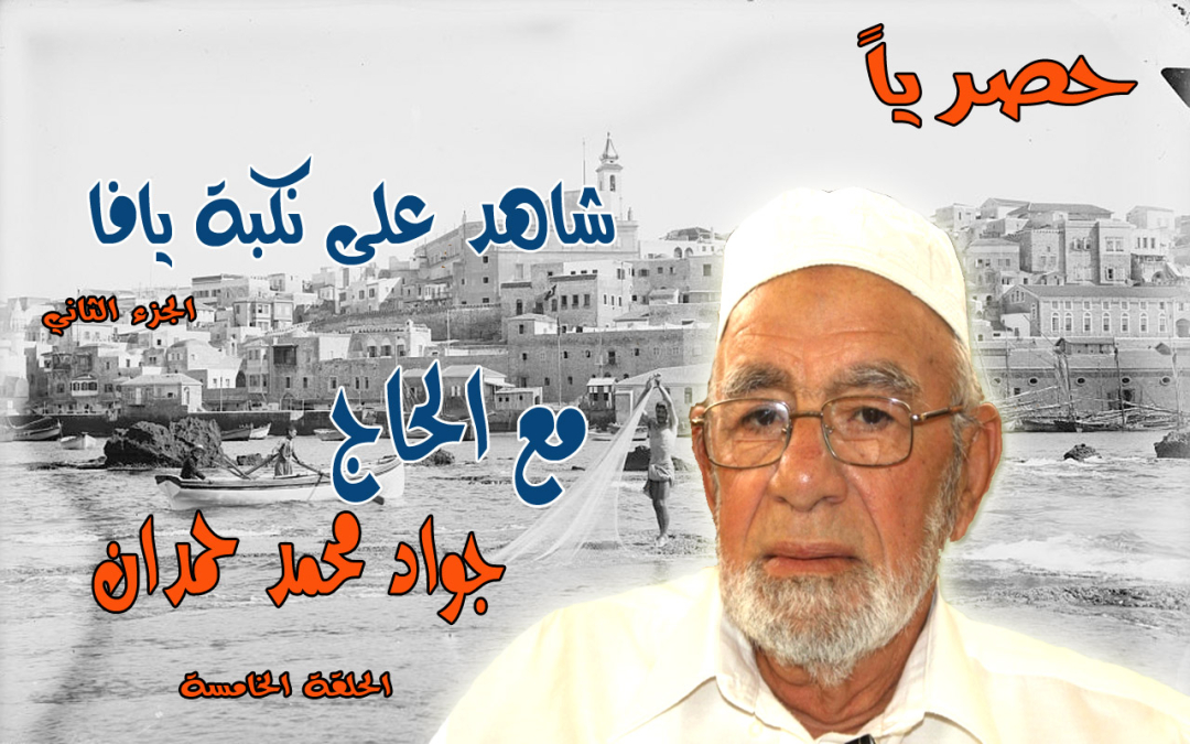 وخلال الحلقة الخامسة التقينا بالحاج جواد محمد سالم حمدان من مواليد مدينة يافا عام 1935 الذي يتحدث عن ما يذكره من حياة اهالي مدينة يافا قبل عام النكبة، ويتحدث عن والده ووالدته وما يذكره من حياتهم في المدينة، ويذكر بيتهم وبعض المعالم في حي المنشية قبل ان يتم تدميره.