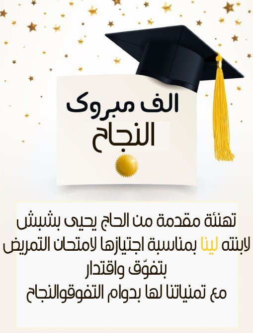 اولا اهنئ الطالبة بنجاحها متمنيا لها دوام التقدم والنجاح . وبعد اهنئ زميلي يحي املا من الله دوام الصحة والعافية له والعائلة اجمع .