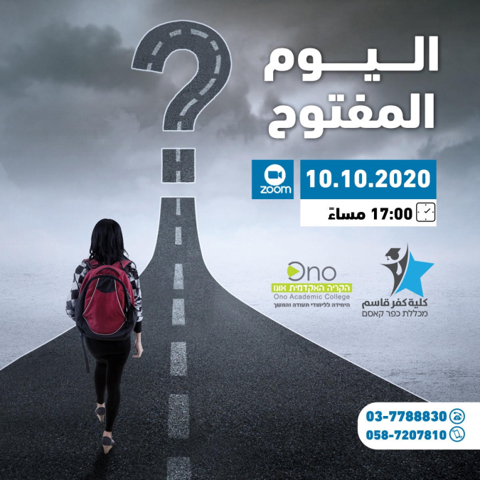 يُعلن مركز التنمية كفر قاسم التابع لكريات اونو - كلية كفر قاسم، عن يوم مفتوح يوم السبت المقبل 10.10.2020.