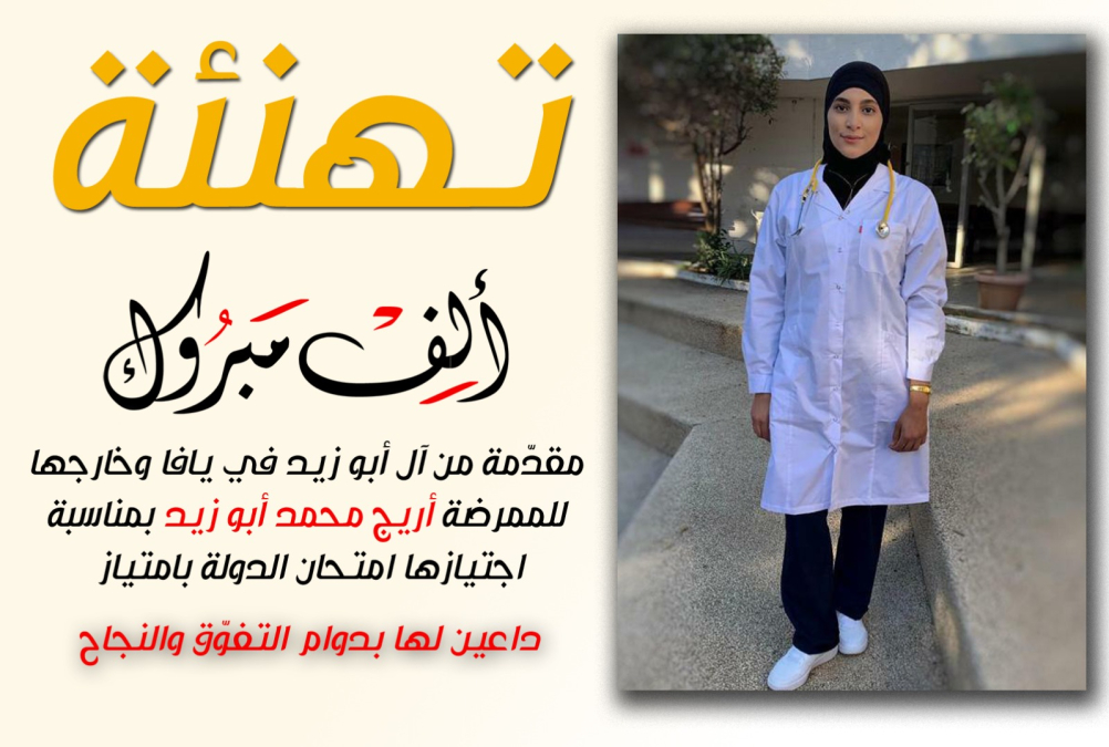 الف مبروك يا خالتي الله ما ضييعلك تعب بفضل الله وفضل مجهودك ودعواتنا جميعا الحمد لله رب العالمين احنا فخورين فيكي وانتي فخر لبلدك يافا والف مبروك للناجحين جميعا