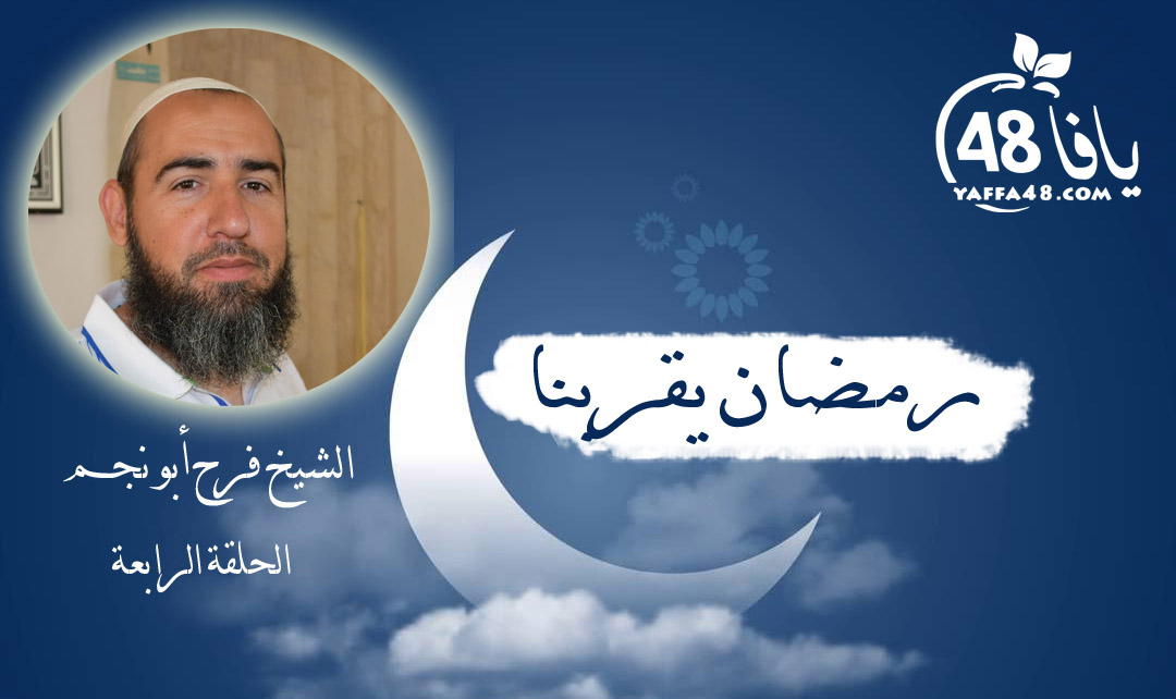 وفي الحلقة الرابعة يتحدث الشيخ فرح أبو نجم عن قراءة القرآن في شهر رمضان الكريم، وثواب قراءة القرآن، كما ويتطرق إلى هجر قراءة القرآن واسبابها، داعياً الى جعل شهر رمضان المبارك شهر مصالحة مع القرآن الكريم.