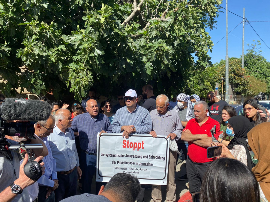 وقال النائب أبو شحادة:" ما يجري في الشيخ جراح هو استمرار لعملية التطهير العرقي التي تنتهجها إسرائيل تجاه الفلسطينيين منذ النكبة وحتى يومنا هذا، وتهجير العائلات المقدسية من بيوتها في الشيخ جراح هو جريمة من قبل الاستعمار الاستيطاني بهدف إحلال المستوطنين مكان أصحاب البيوت الأصليين".