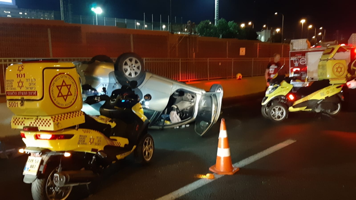 اصابة شخص بانقلاب مركبة بمفرق فولفسون جنوب يافا