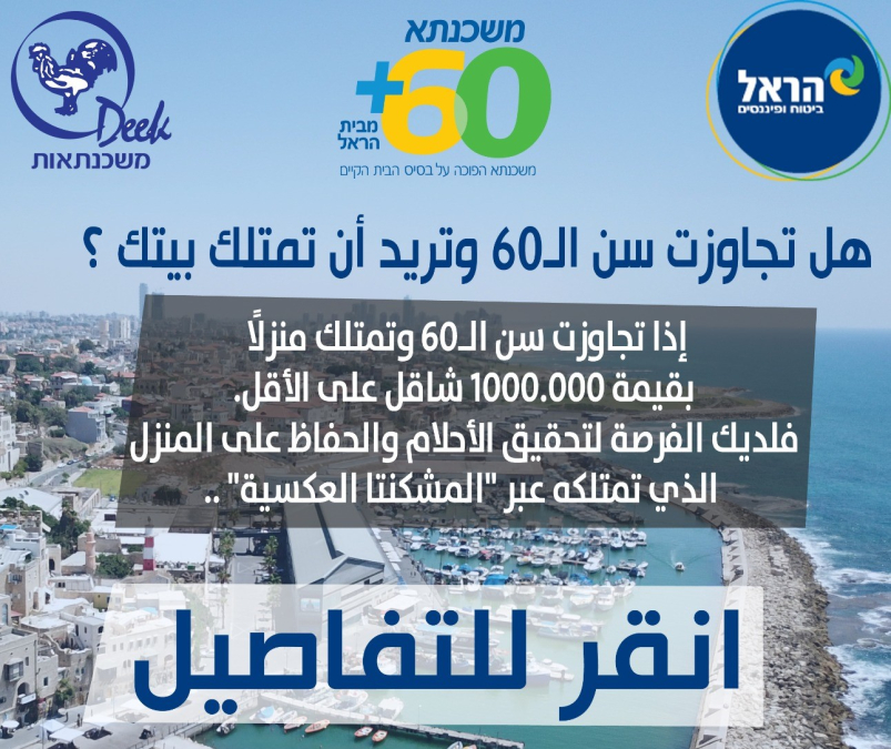 هذه المشكنتا تُقدمها شركة "هرئيل" 60+، تُمكّن اعطاء قرض لجيل الـ60 وما فوق شريطة رهن العقار الذي بحوزتهم مقابل منح الشركة المبلغ.