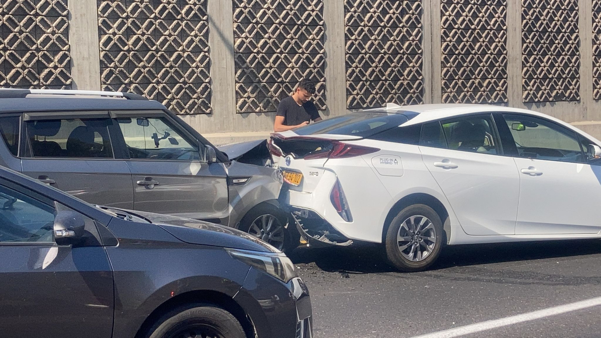 بالصور: حادث طرق متسلسل جنوب يافا واصابتان طفيفتان