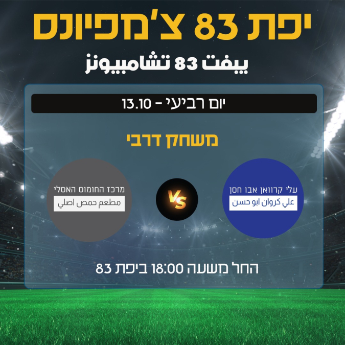 يستأنف دوري “ييفت 83 تشامبيونز” الذي انطلق يوم الاثنين ألعابه اليوم الأربعاء في ملعب ييفت 83 (البوعيل) ابتداءً من الساعة السّادسة مساءً.