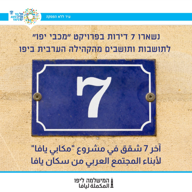 على مين جايين تتهبلوا قبل اربع سنين قالوا 160 وحده سكنية لأهل يافا هلا صاروا 20 بس وين الباقي لليهود . لازم المسأولين يفحصوا هدا الشي ،،، ضحكوا عليكم مثل مضحكوا عليكم بمشروع ( מגן אברהם )