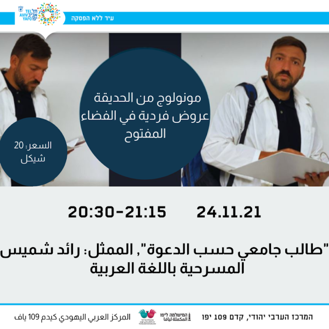 الأربعاء: عرض مسرحية "طالب جامعي حسب الدعوة" بيافا