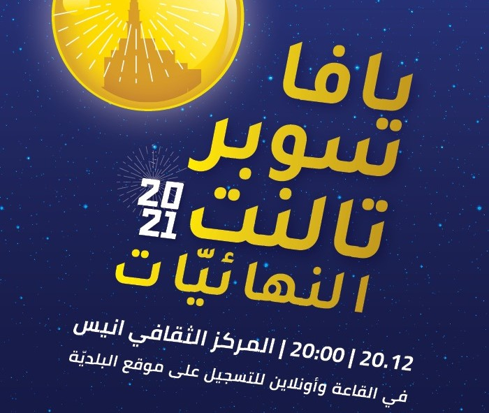 يوم الاثنين 20.12، الساعة 8:00 مساءً سيعقد في مركز أنيس الثقافي في القاعة وعبر الإنترنت، الحدث الأخير لـ "Jaffa Supertalent 2021" - مسابقة حائزة على جوائز للمواهب الجديدة في يافا في مجال الفنون المسرحية.