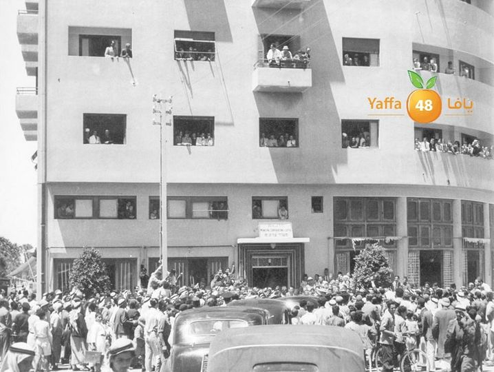 حصل موقع يافا 48 على صورة نادرة جداً لمبنى بلدية يافا، وذلك أثناء عقد اجتماع طارئ أمام البلدية في عام 1948.