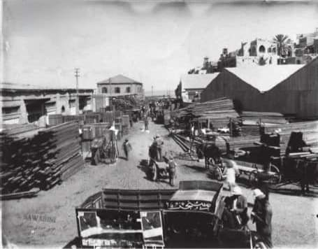 صورة نادرة لمخازن الخشب المستورد في ميناء يافا
