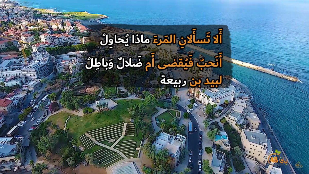 ما زال موقع يافا 48 مستمر معكم في نشر مختارات من أجمل القصائد، مع مقاطع جوية ساحرة لمدينة يافا، وهذه المرة نستمع لقصيدة "أَلا تَسأَلانِ المَرءَ ماذا يُحاوِلُ" للشاعر لبيد بن ربيعة والتي يقول فيها :