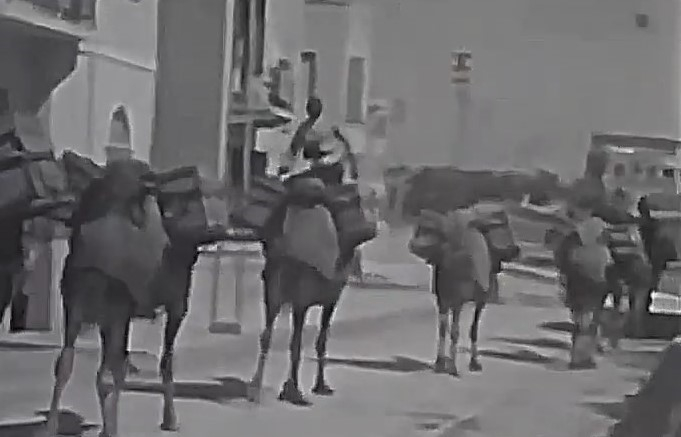 ويظهر في الفيديو جانب من الحياة اليومية للمواطنين في المدينة آنذاك، كما يظهر قافلة جمال تحمل البضائع وهي تسير في احد شوارع المدينة.