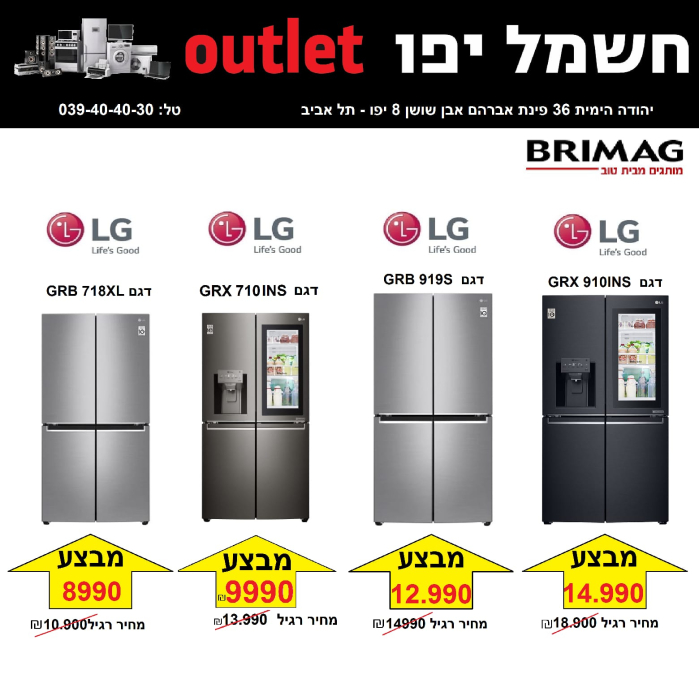 تُعلن أكبر صالة عرض للأجهزة الكهربائية في مدينة يافا "OUTLET" عن حملة تخفيضات جديدة، وذلك على مجموعة واسعة من الأجهزة الكهربائية، والتي تشمل "تلفزيونات، غسالات، ثلاجات، أفران غاز، أفران كهربائية، خلاطات" وغيرها الكثير.