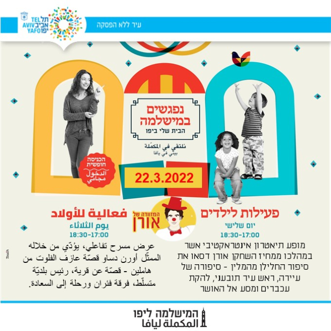 كلّ يوم ثلاثاء، سنلتقي في الساعة 17:00 في مبنى المكمّلة (جادة يروشلايم 110) لمدّة ساعة ونصف من العرض، التمثيل والإبداع.