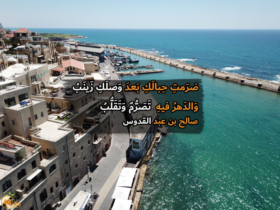 ما زال موقع يافا 48 مستمر معكم في نشر مختارات من أجمل القصائد، مع مقاطع جوية ساحرة لمدينة يافا، وهذه المرة نستمع لقصيدة "صَرَمتِ حِبالَكِ بَعدَ وَصلَكِ زَينَبُ" للشاعر صالح بن عبد القدوس والتي يقول فيها: