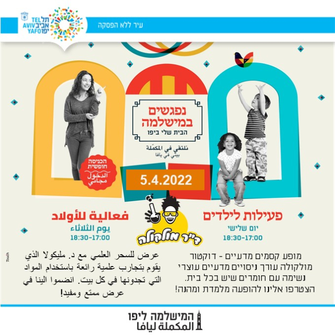 كلّ يوم ثلاثاء، سنلتقي في الساعة 17:00 في مبنى المكمّلة (جادة يروشلايم 110) لمدّة ساعة ونصف من العرض، التمثيل والإبداع.