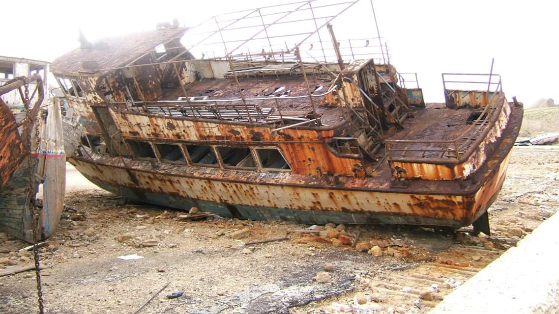 ويشاهد في احدى الصور بقايا البيوت "الطمم" التي تم هدمها في حي العجمي وقد تم القاء ردمها بالقرب من الميناء، حيث هُدم أكثر من 150 دونماً من البيوت ونقل ردمها للميناء.