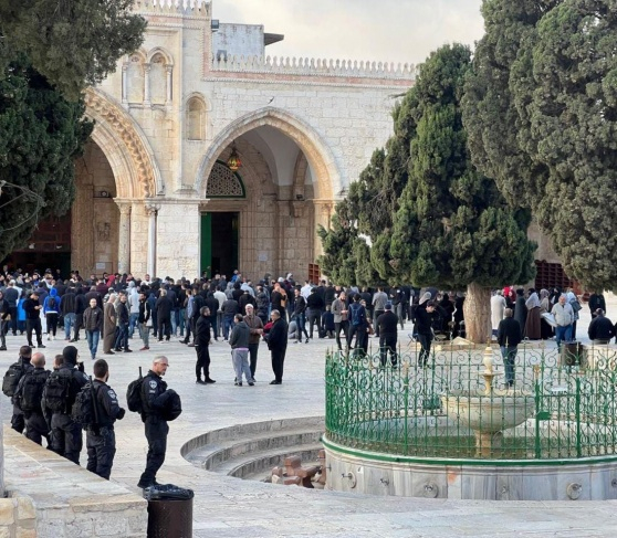 وأفادت دائرة الأوقاف بأن مجموعات من المستوطنين اقتحمت الأقصى بحراسة شرطة الاحتلال التي عمدت على إبعاد الفلسطينيين عن مسار اقتحامات المستوطنين لساحات الحرم، فيما واصلت فرض تقييدات على دخول الشبان للأقصى ومنع الكثير منهم أداء صلاة الفجر بالمسجد.