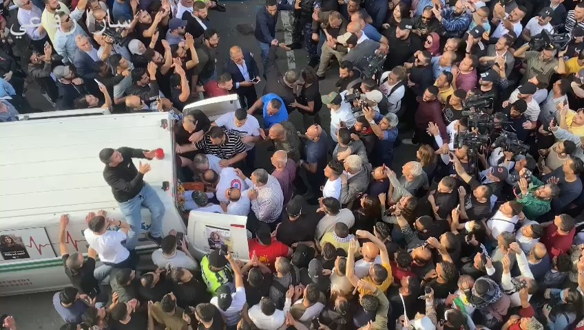 شاهد: لحظة وصول جثمان الصحفية أبو عاقلة لمقر الجزيرة برام الله
