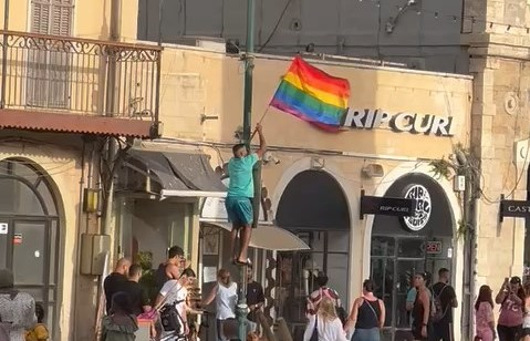 كان لازم من اول ما علاقهم تخلع الإعلام هذه مش بعد انتهى احتفالهم لو انا انا شخصيا وضعت علمي اللي هو شرف وطهارة وتاج على رأس كل انسان حر ومحترم كان سجنوني بتهمة أمنية لمدة أربعين عام أما هذا العلم المحرم يجوز ولديهم اقوى حق لعنة الله على كل ظالم وكافر