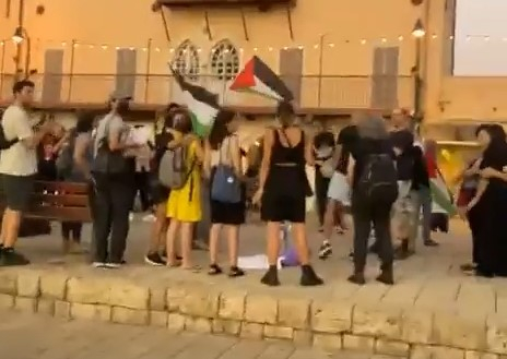 تناول الاعلام العبري وقفة احتجاجية لمجموعة من النشطاء من اليسار الاسرائيلي والتي أقيمت يوم أمس الأحد في دوار الساعة بمدينة يافا، مستعينين بذلك بشريط فيديو التقطه أحد النزلاء في المدينة، وقد تزامنت تلك الوقفة مع دوي صفارات الانذار، ليجد الاعلام العبري ضالته ويتناول الحدث على أن أهالي مدينة يافا يحتفلون بقدوم تلك الرشقات الصاروخية على سماء المدينة.
