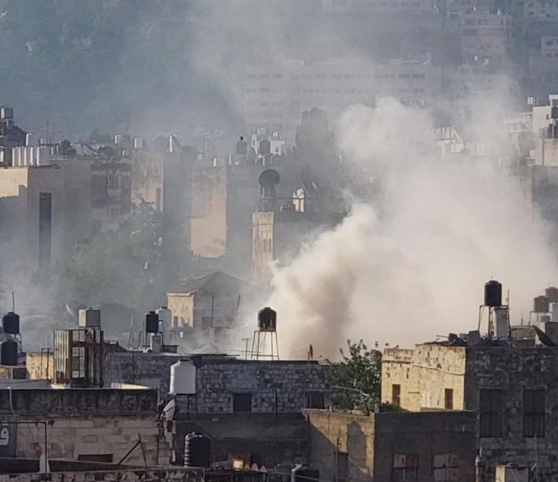ودفعت قوات الاحتلال بتعزيزات كبيرة الى المنطقة واطلقت قذائف باتجاه المنزل المحاصر وسُمع صوت انفجار في البلدة القديمة،
