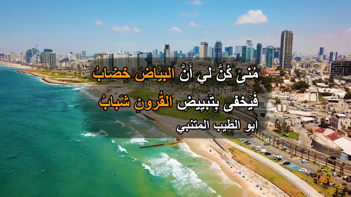ما زال موقع يافا 48 مستمر معكم في نشر مختارات من أجمل القصائد، مع مقاطع جوية ساحرة لمدينة يافا، وهذه المرة نستمع لقصيدة "مُنىً كُنَّ لي أَنَّ البَياضَ خِضابُ" للشاعر أبو الطيب المتنبي والتي يقول فيها :