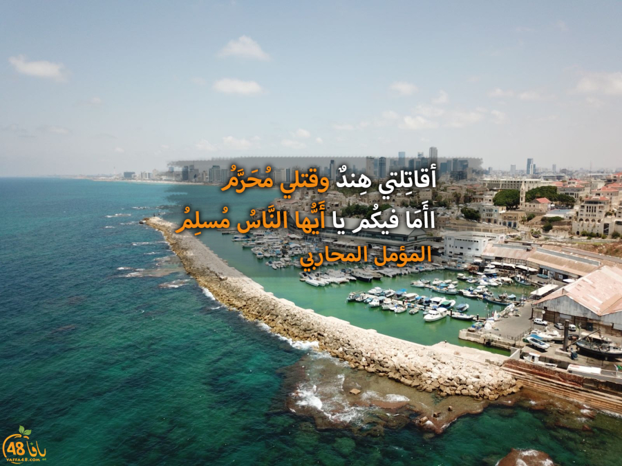 ما زال موقع يافا 48 مستمر معكم في نشر مختارات من أجمل القصائد، مع مقاطع جوية ساحرة لمدينة يافا، وهذه المرة نستمع لقصيدة "أقاتِلتي هِندٌ وقتلي مُحَرَّمُ" للشاعر المؤمل بن أميل المحاربي والتي يقول فيها :