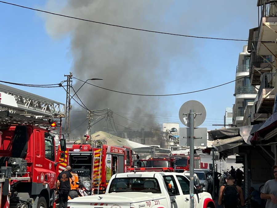 حريق كبير داخل سوق الكرمل بحي المنشية في يافا