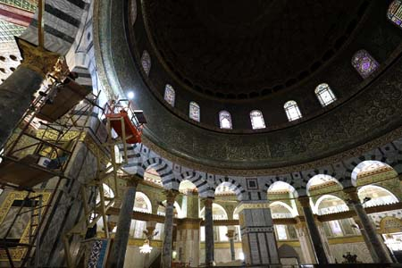 الانتهاء من اعمال ترميم أعمدة وأسقف قبة الصخرة المشرفة