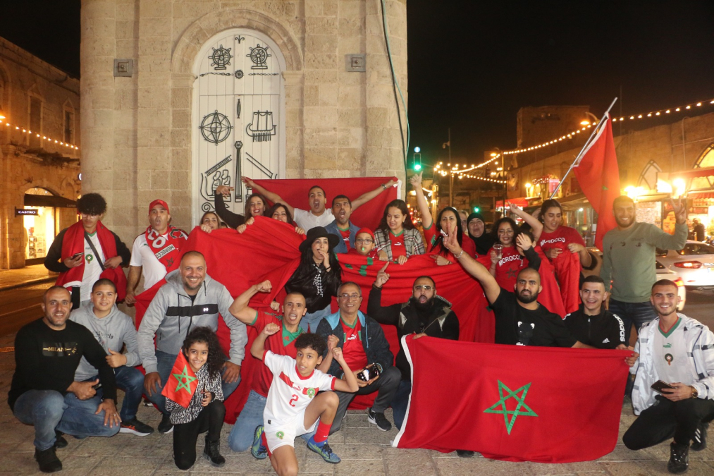 وقد شهدت مدينة يافا مساء اليوم السبت موجة احتفالات عارمة بفوز المنتخب المغربي التاريخي وتأهله الى نصف نهائي كأس العالم.
