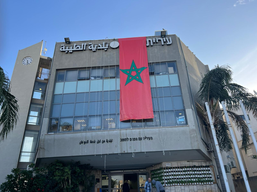 علم المغرب على واجهة مبنى بلدية الطيبة