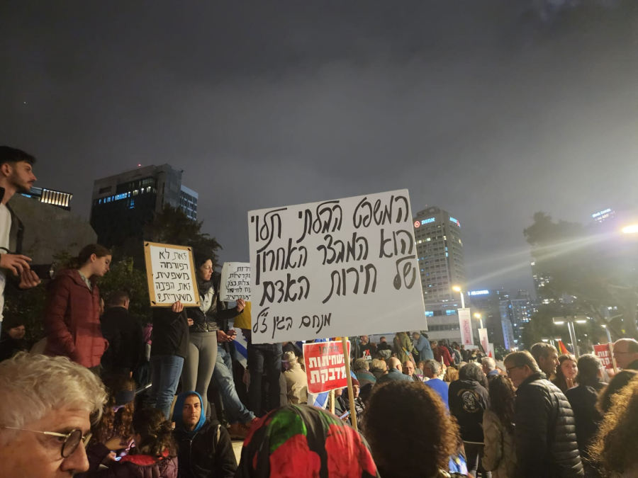 تظاهر في ميدان رابين بتل ابيب مساء السبت الآلاف ضد الحكومة الجديدة وبالأخص ضد خطة وزير العدل ياريف ليفين ادخال إصلاحات على الجهاز القضائي. وتنظم هذه المظاهرة تحت عنوان "ندافع عن الديموقراطية".