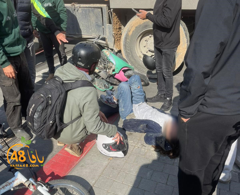 أفاد مراسل يافا 48 أن حادث طرق بين دراجة نارية وشاحنة وقع ظهر اليوم الثلاثاء في شارع مرزوق وعازر بمدينة يافا، وقد اسفر عن اصابة راكبة الدراجة باصابات وُصفت بالمتوسطة.