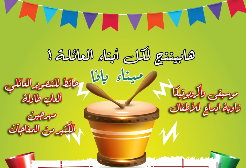 وسيشمل على موسيقى واكروبوتيكا، زاوية ابداع للاطفال، حائط للتصوير العائلي، ألعاب طاولة، مهرجين، والكثير من المفاجآت.