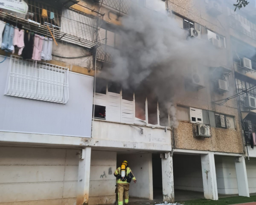 اللد: طواقم الاطفاء تُنقذ 8 محاصرين من حريق في شقة سكنية