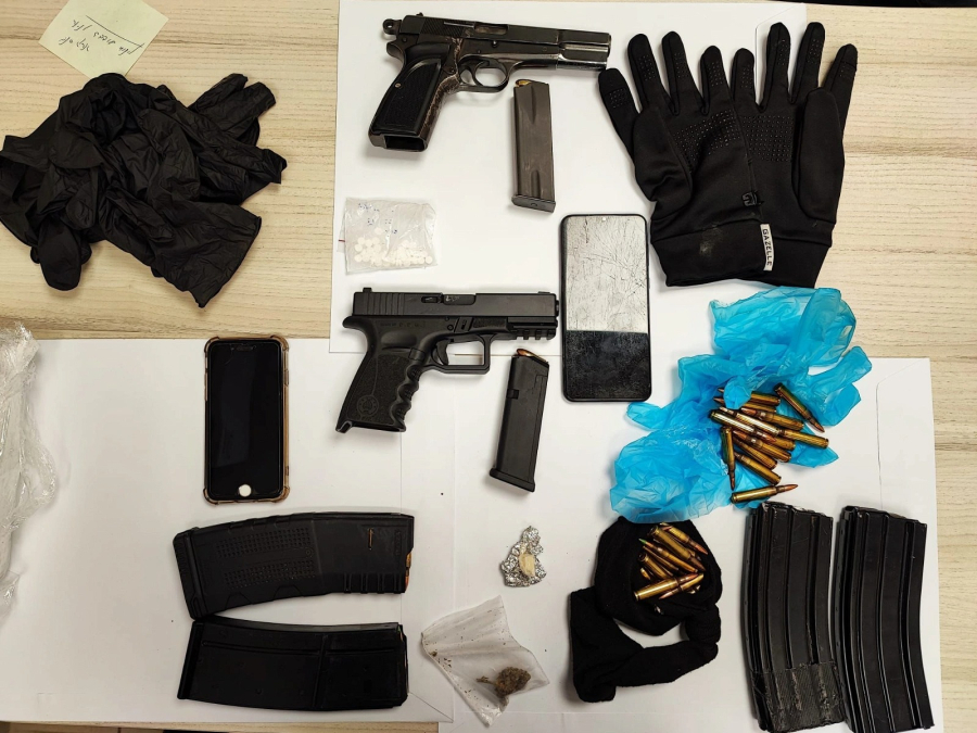 اعتقلت الشرطة شابين في العشرينيات والثلاثينيات من العمر من اللد، الليلة الماضية، بشبهة حيازة مسدسين، خراطيش، والعديد من الذخيرة وأنواع مختلفة من المخدرات.