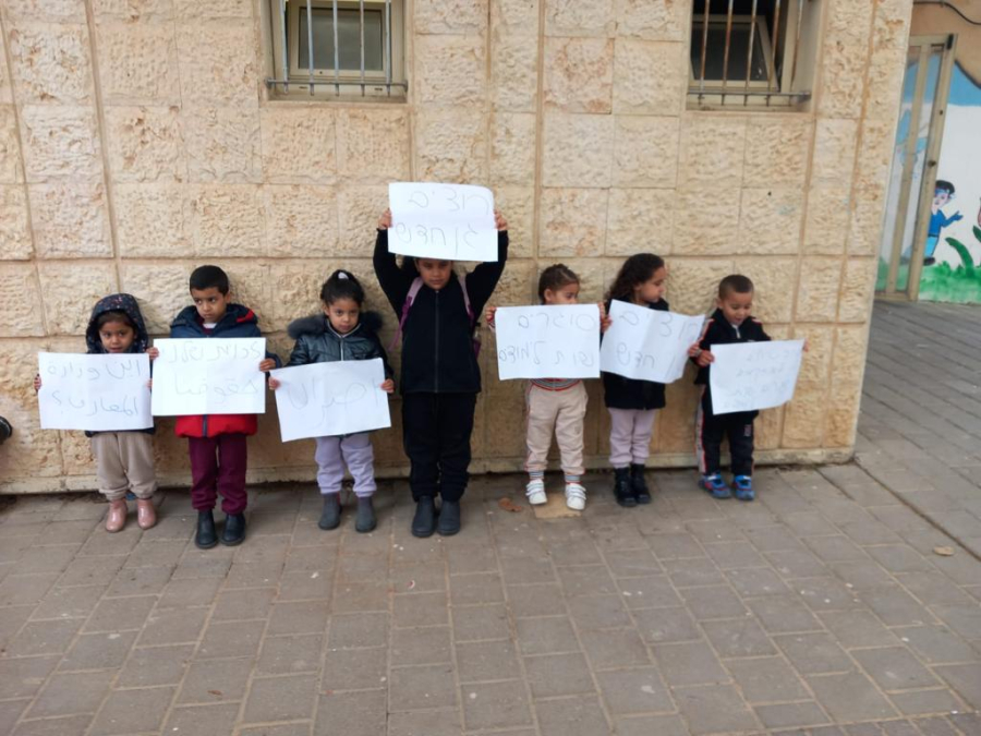 وقد شارك في الوقفة عدد من أطفال الروضات المذكورة، ورفعوا شعارات باللغتين العربية والعبرية للضغط على البلدية لتنفيذ مطالب الأهالي بصيانة هذه الروضات وترميمها.