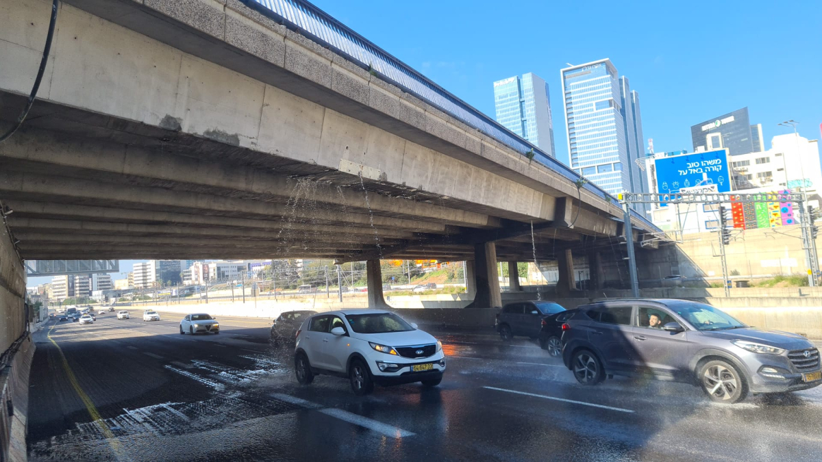 اغلاق أحد جسور تل ابيب نتيجة لتسريب المياه