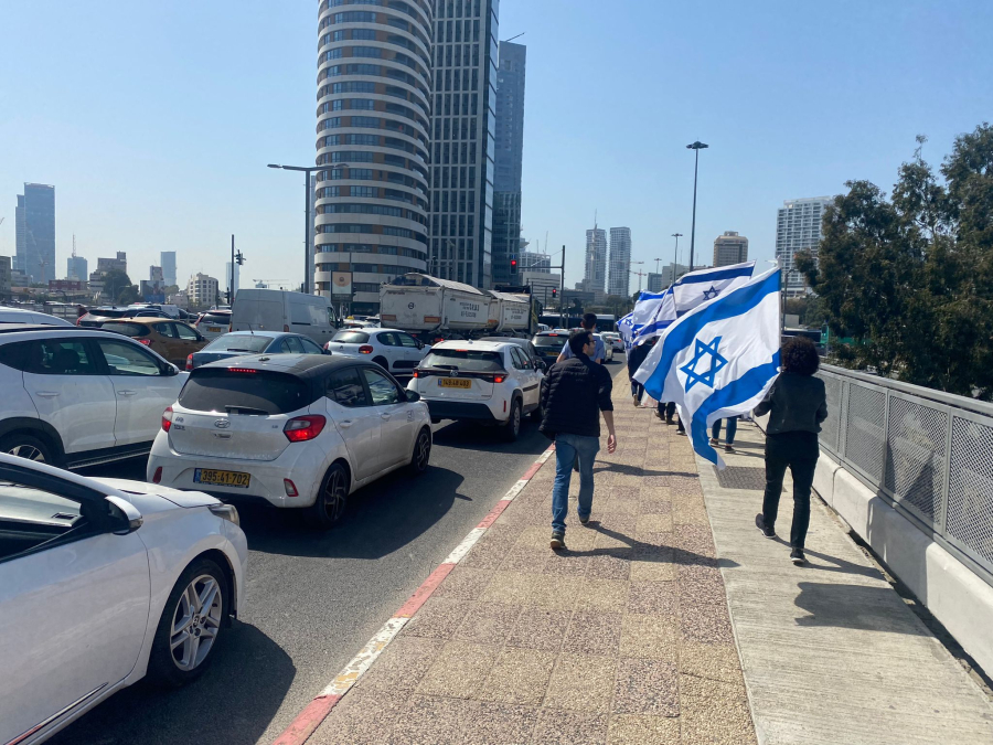 تشهد البلاد منذ ساعات الصباح الباكر، احتجاجات كبيرة ومظاهرات حاشدة وقوافل سيارات، ذلك احتجاجًا على التعديلات في جهاز القضاء التي بادرت اليها الحكومة ، ضمن الاحتجاجات تم اغلاق الشارع رقم واحد الواصل بين مدينتي القدس وتل ابيب، حيث شهد الشارع الهام شللا تاما لحركة المرور.