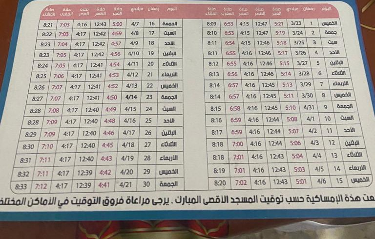 حذّر عدد من المواطنين الأهالي في مدينة يافا ومختلف أنحاء البلاد عبر موقع يافا 48، من تداول ونشر امساكيات رمضانية تحتوي على أخطاء فادحة في مواعيد الصلاة، الأمر الذي من شأنه أن يُفسد على المسلمين عبادتهم وصيامهم.