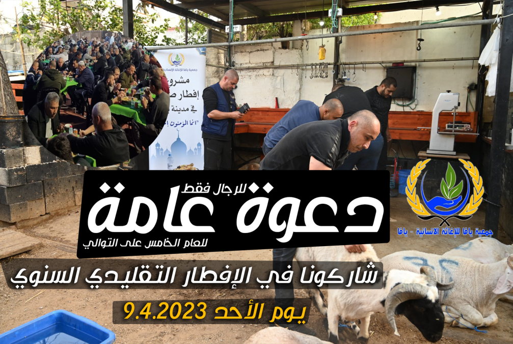 اهل يافا الطعام الكم ورمضان شهركم الفضيل والمكان الكم والعدد يتضاعف الجمعيه مش مقصره بالبلد وناسها كل عام وانتم بخير