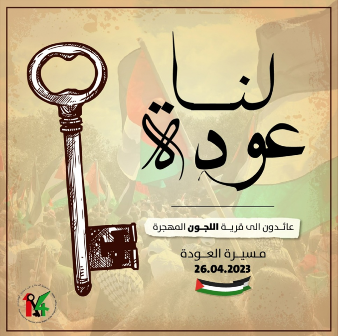 وقد دعت جمعية الدفاع عن حقوق المهجرين، إلى المشاركة الواسعة في السادس والعشرين من نيسان للعام 2023 في مسيرة العودة الـ26 إلى قرية اللجّون المهجرة.