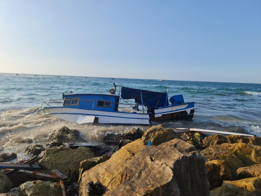 يافا: مياه البحر تلفظ مركباً على الشاطئ قرب مسجد البحر