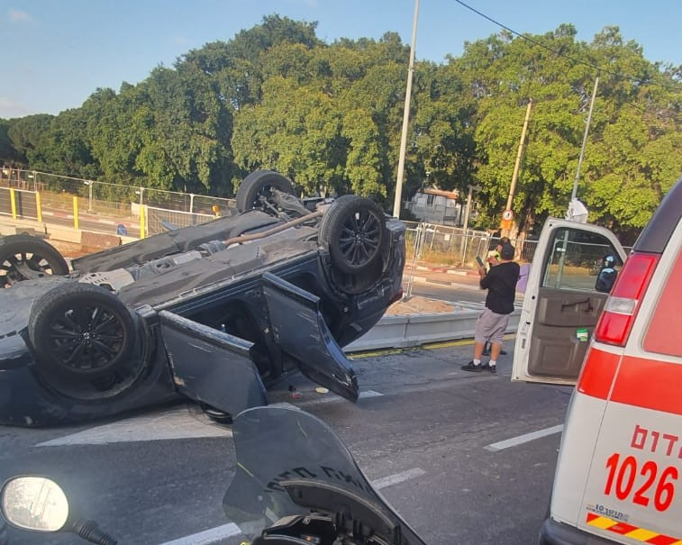 اصابة رجل وابنته بحادث طرق وانقلاب مركبة شرق يافا
