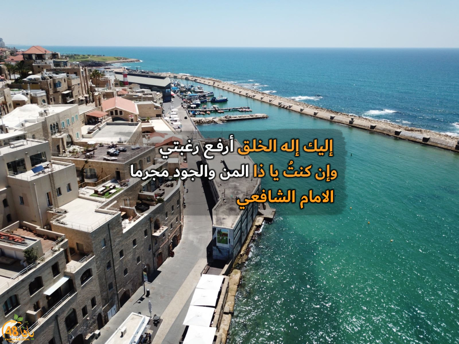 ما زال موقع يافا 48 مستمر معكم في نشر مختارات من أجمل القصائد، مع مقاطع جوية ساحرة لمدينة يافا، وهذه المرة نستمع لقصيدة "إليك إلـه الخلـق أرفــع رغبتي" للامام الشافعي والتي يقول فيها :