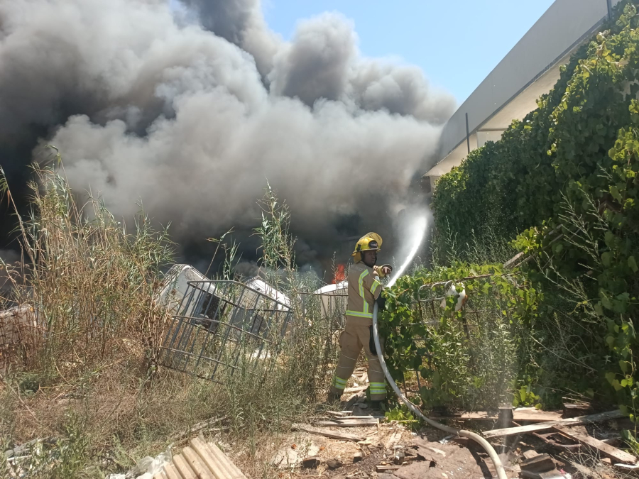 الرملة: 6 طواقم اطفائية تعمل على اخماد حريق داخل مخازن