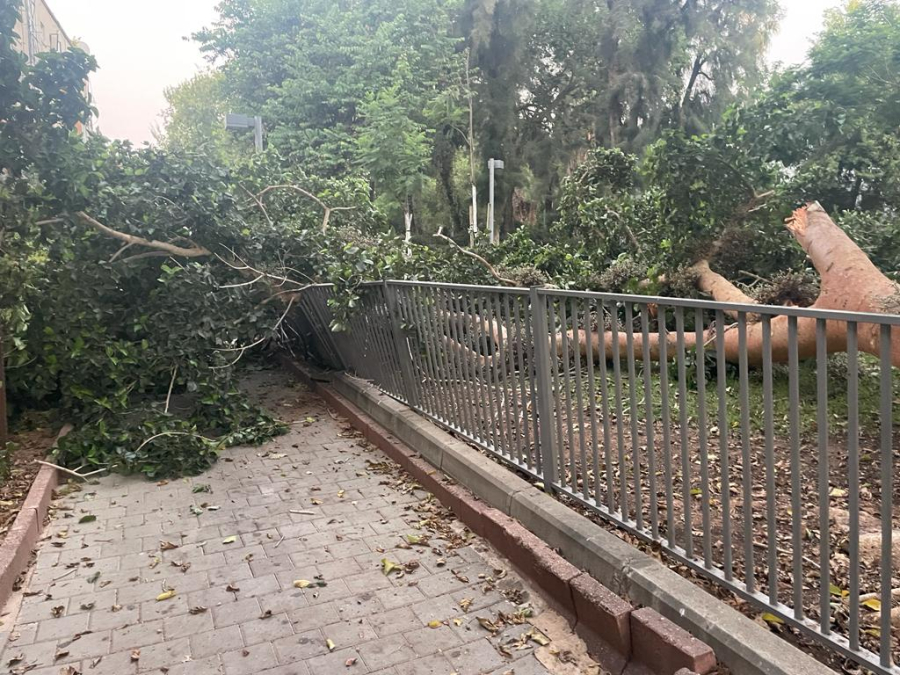 وقال شهود عيان أن جزء كبير من الشجرة سقط في احدى الحدائق، وبلطف الله كانت الحديقة فارغة من الزوار ولم تقع الكارثة، حيث تم ابلاغ الطواقم المختصة في البلدية لازالتها من المكان.