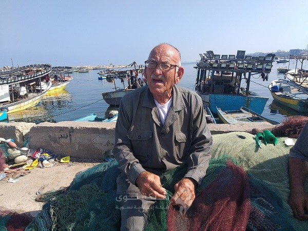 "رَسْل الشبك".. صياد يافاوي ينسج رزقه على بحر غزة
